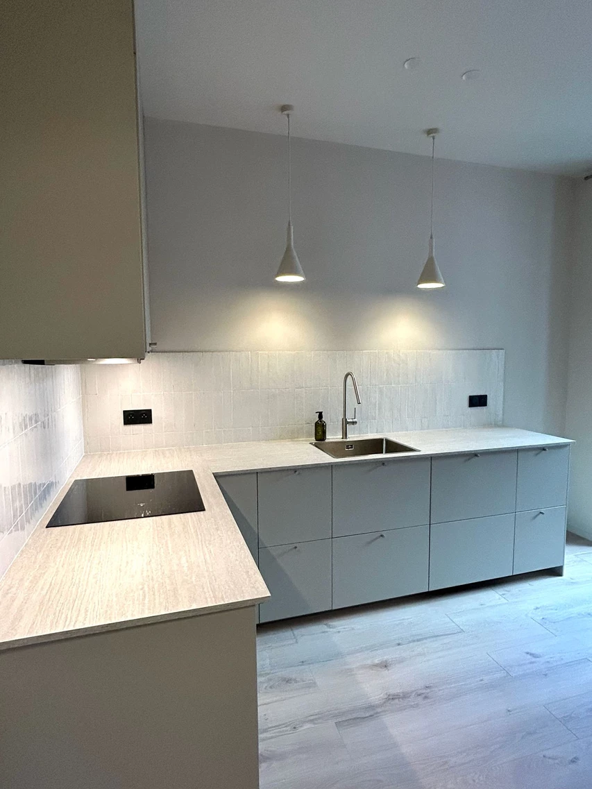 Elegantly designed entrance, spacious kitchen thoughtfully equipped and styled, pleasant living room,